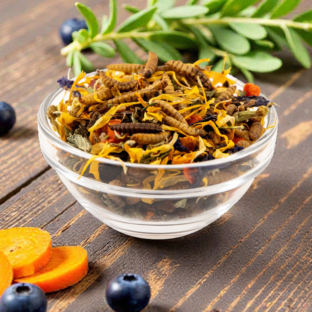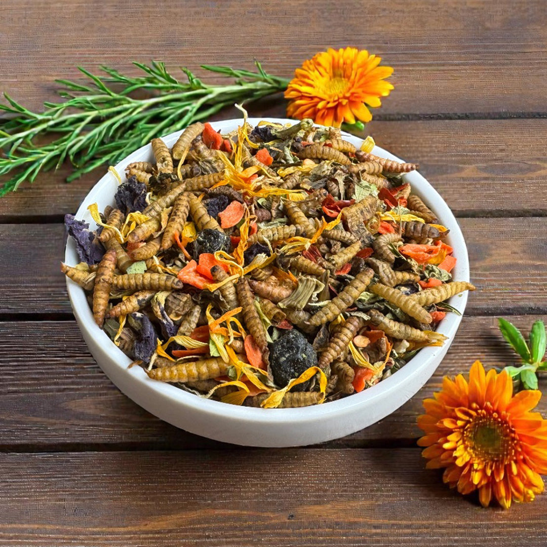 Formulated with black soldier fly larvae, herbs, vegetables and superfoods — no medications, grains, synthetic additives, or fillers. This is flock wellness done right: clean, functional ingredients that support stronger eggs, vibrant feathers, and healthy digestion. Loved by hens. Trusted by the people who care for them.
